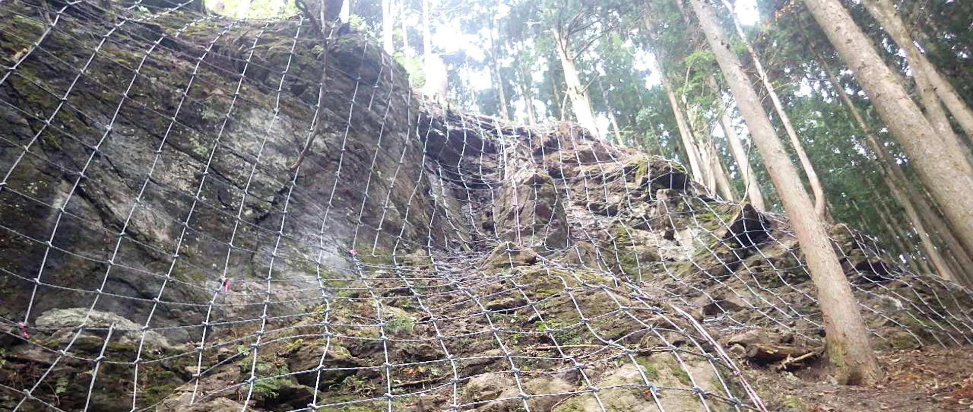 当社では公共工事を中心に、法面保護工のうち、落石対策工・土砂崩壊防止工を手掛けております。施工はもちろん、法面調査や工法提案等も行っており、愛媛県下に落石対策工法、土砂崩壊対策工法の普及・促進を行っているユニークな会社です。